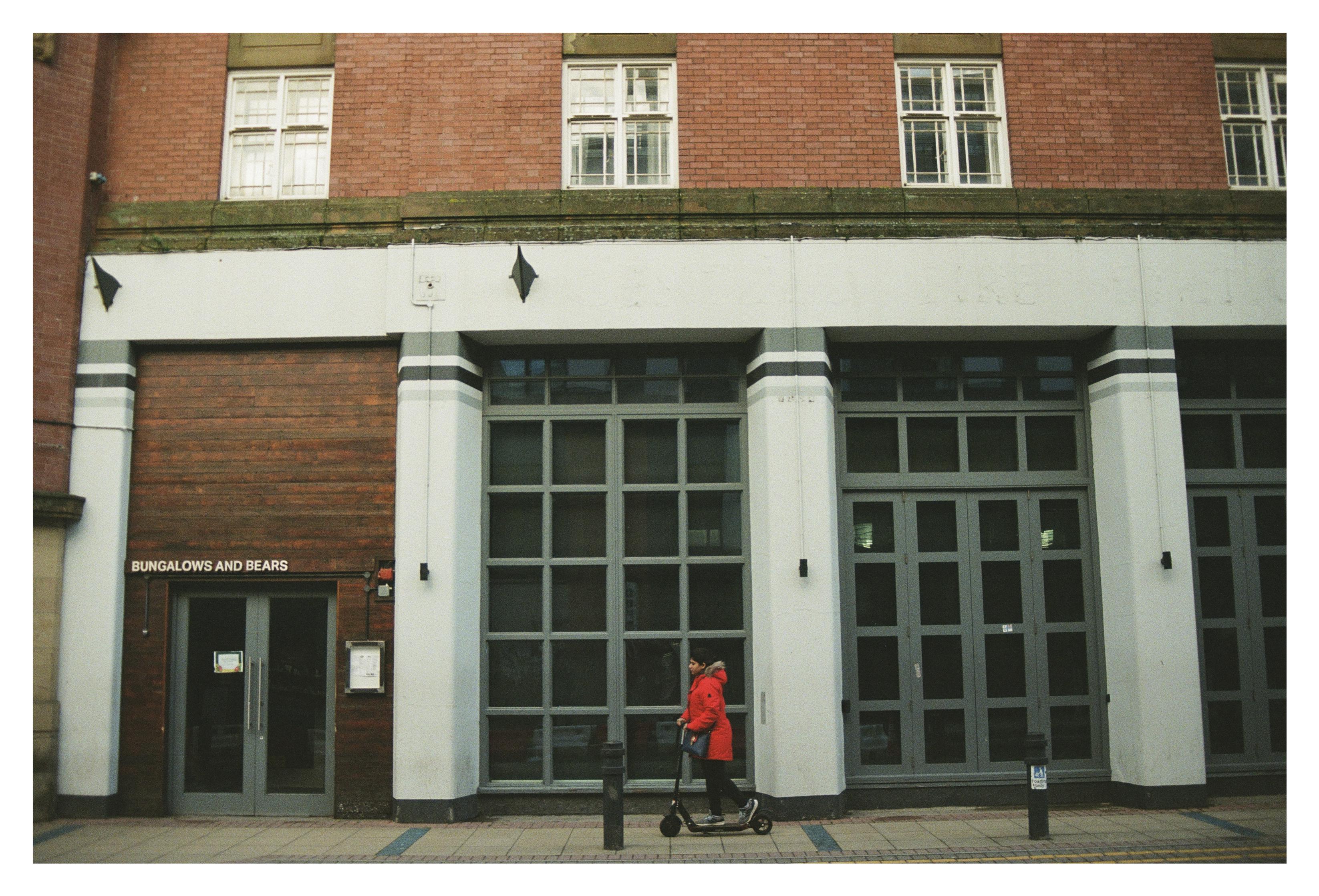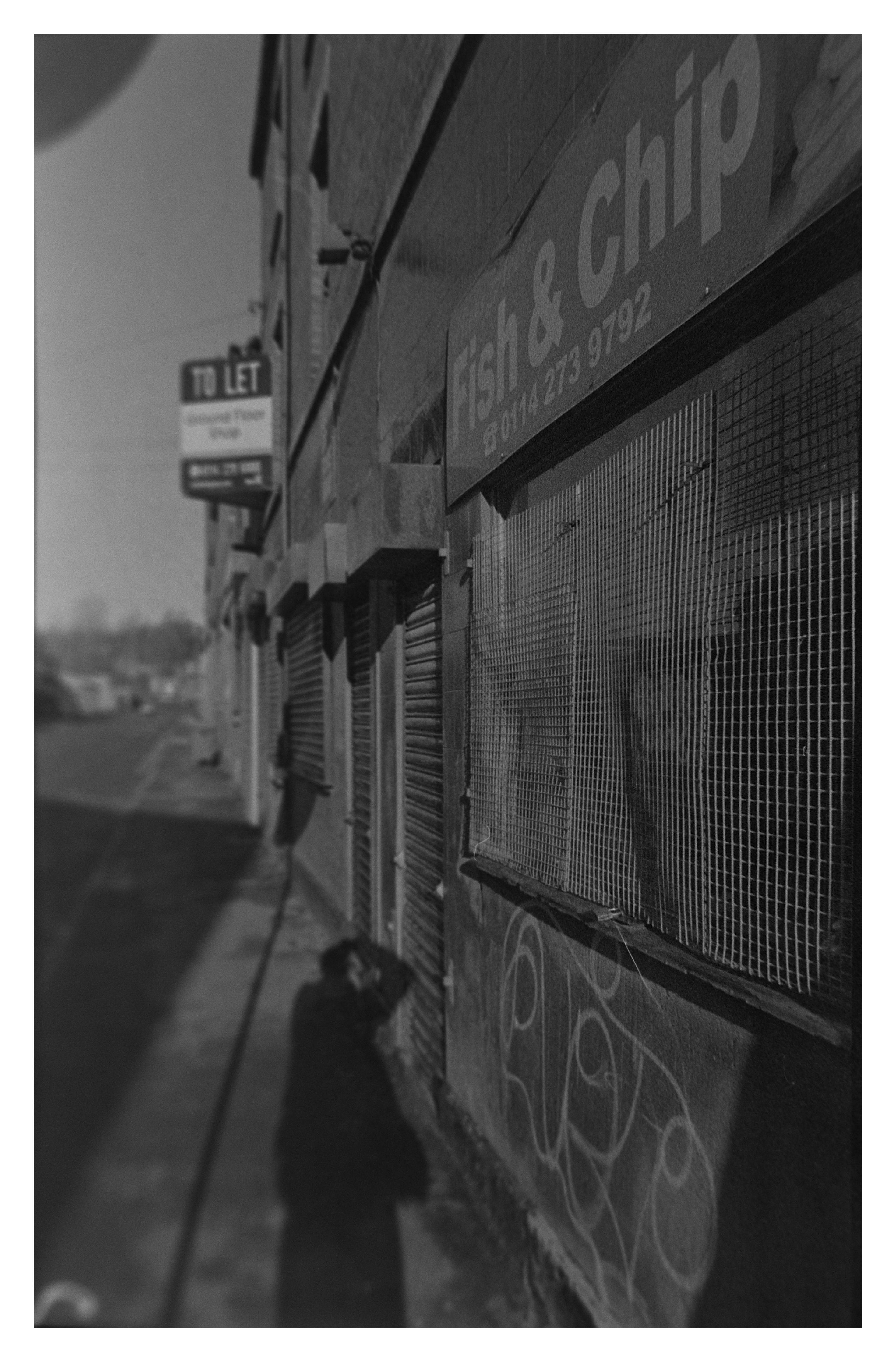 for the DOF but it still looks great. (Kodak Ultramax 400, 35/70mm f3.5)Scooter and bear. "Trying" to be artsy or whatever, came out meh but great colours on the coat. (Kodak Ultramax 400, 35/70mm f3.5)Flats, Sheffield. Nice silhouette of some flats, wasn't expecting it. (Kodak Ultramax 400, 35/70mm f3.5)First shot of b&w, really happy with the reflection but wish there was more contrast. (Ilford Hp5+, 35/70mm f3.5)Duckys. Love the contrast but a bit more sharpness would have been nice. (Ilford Hp5+, 35/70mm f3.5)Art Tower from a distance, Sheffield. (Ilford Hp5+, 35/70mm f3.5)Winding path. (Ilford Hp5+, 35/70mm f3.5)Saint Mary's Walkley, Sheffield. (Ilford Hp5+, 35/70mm f3.5)Outbuilding. (Ilford Hp5+, 35/70mm f3.5)Tram stop, Sheffield. (Kentmere 400 (+1 800), 35/70mm f3.5)Underpass, Sheffield. (Kentmere 400 (+1 800), 35/70mm f3.5)New student accommodation, Sheffield. (Kentmere 400 (+1 800), 35/70mm f3.5)The Diamond, Sheffield. (Kentmere 400 (+1 800), 35/70mm f3.5)Jessops West, Sheffield. (Kentmere 400 (+1 800), 35/70mm f3.5)Joe taking the same shot as above, I stole his composition. (Kentmere 400 (+1 800), 35/70mm f3.5)NHS. The contrast and sharpness are on point. (Kentmere 400 (+1 800), 35/70mm f3.5)Unknown dude. I got his instagram to send him the photo but my phone didn't save it, gutted. (Kentmere 400 (+1 800), 35/70mm f3.5)